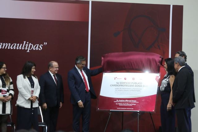 Durante la ceremonia, el gobernador también develó la placa que convierte al Centro de Convenciones Expo Tampico en el primer edificio público cardio protegido y, además, entregó reconocimiento póstumo a las doctoras Cecilia Sanz Sanz y Cecilia Ridaura Sanz por su invaluable legado en la medicina y su incansable compromiso con la salud pública, el cual fue recibido por el doctor Ruy López Ridaura.