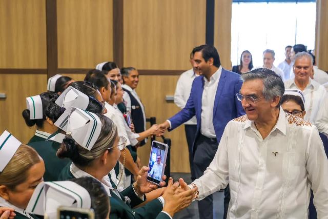 Importantes reconocimientos recibieron, el Gobernador Américo Villarreal Anaya, por parte de la Enfermería de Tamaulipas en agradecimiento a su destacado compromiso y trabajo en favor de la salud de las familias y su impulso al sector de la Enfermería.