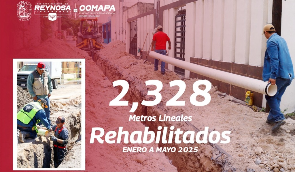 Reynosa, Tam.- Atendiendo las indicaciones del Presidente Municipal, Carlos Peña Ortiz, y con el compromiso de brindar mejores servicios a las familias reynosenses, la Comisión Municipal de Agua Potable y Alcantarillado de Reynosa ha rehabilitado, de enero a la fecha, un total de 2 mil 328 metros lineales de red sanitaria en diversos sectores de la ciudad.