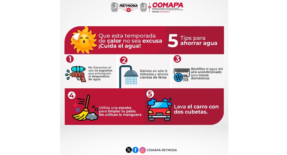Reynosa, Tam.- La Comisión Municipal de Agua Potable y Alcantarillado de Reynosa invita a la ciudadanía a tomar conciencia sobre la importancia de cuidar este recurso, especialmente durante la temporada de altas temperaturas, donde el consumo suele incrementarse considerablemente.