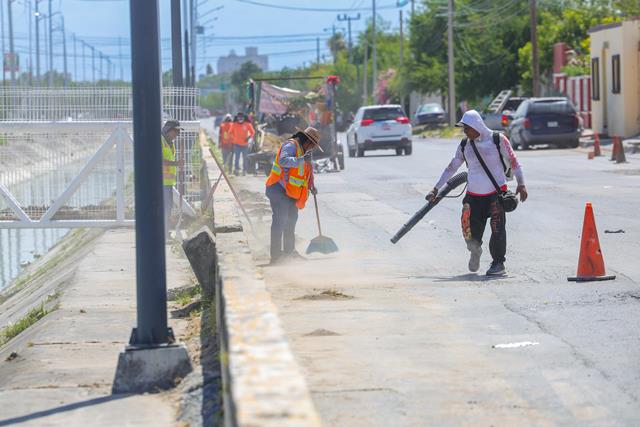 Reynosa, Tam.- El Alcalde Carlos Peña Ortiz constató el estado óptimo del dren Reynosa, después de un exhaustivo trabajo de desazolve y limpieza, acciones que son parte de un programa permanente para prevenir desbordamientos por lluvias, a causa de maleza y basura.