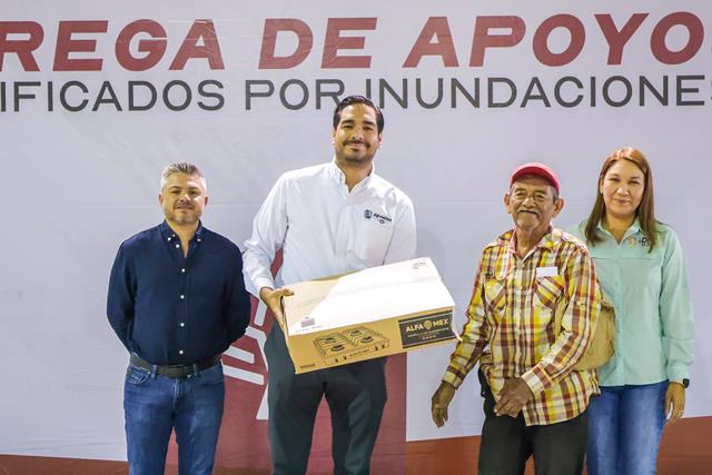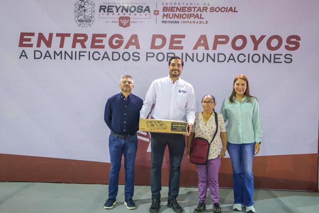 Entre los beneficiarios asistieron: Reymundo Treviño Pérez, María Gloria Garibaldi Castillo, María Salustia Muñiz Barrón y Fidel Martínez Prado; la ayuda humanitaria se sigue cumpliendo aparte aquellas familias damnificadas en más de 77 colonias, quienes han recibido refrigeradores, estufas, colchones, parrillas y kits de limpieza, procedentes de fondos municipales.