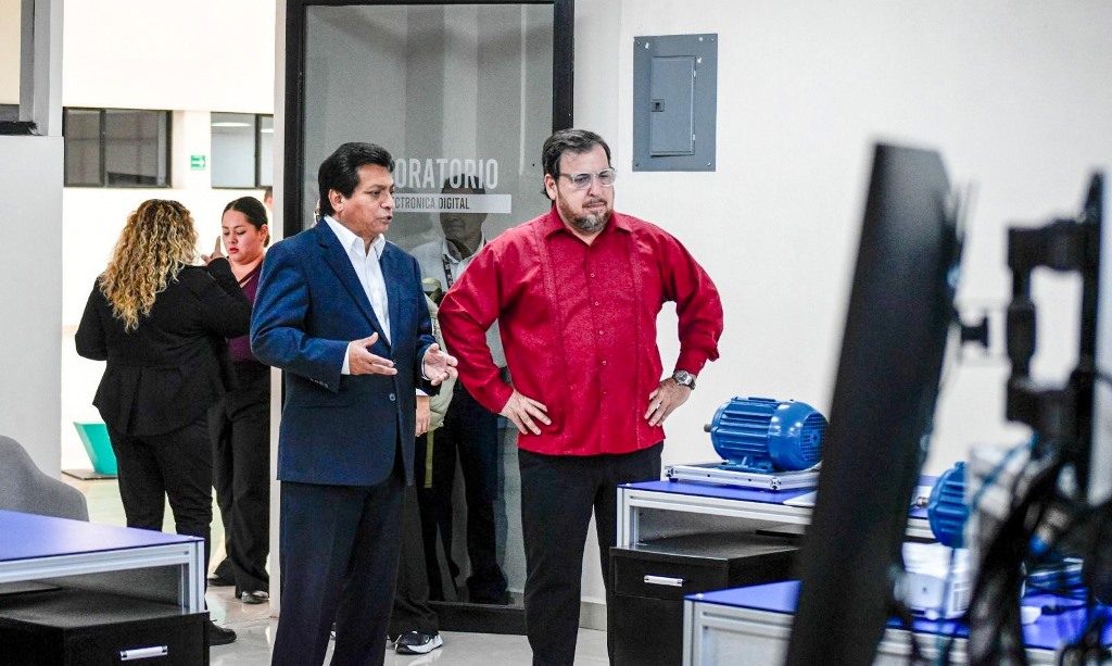 El titular de la SET fue recibido por José Antonio Tovar Lara, rector de la universidad, quien lo llevó a recorrer las principales instalaciones de la institución, incluyendo salones, talleres y áreas administrativas.