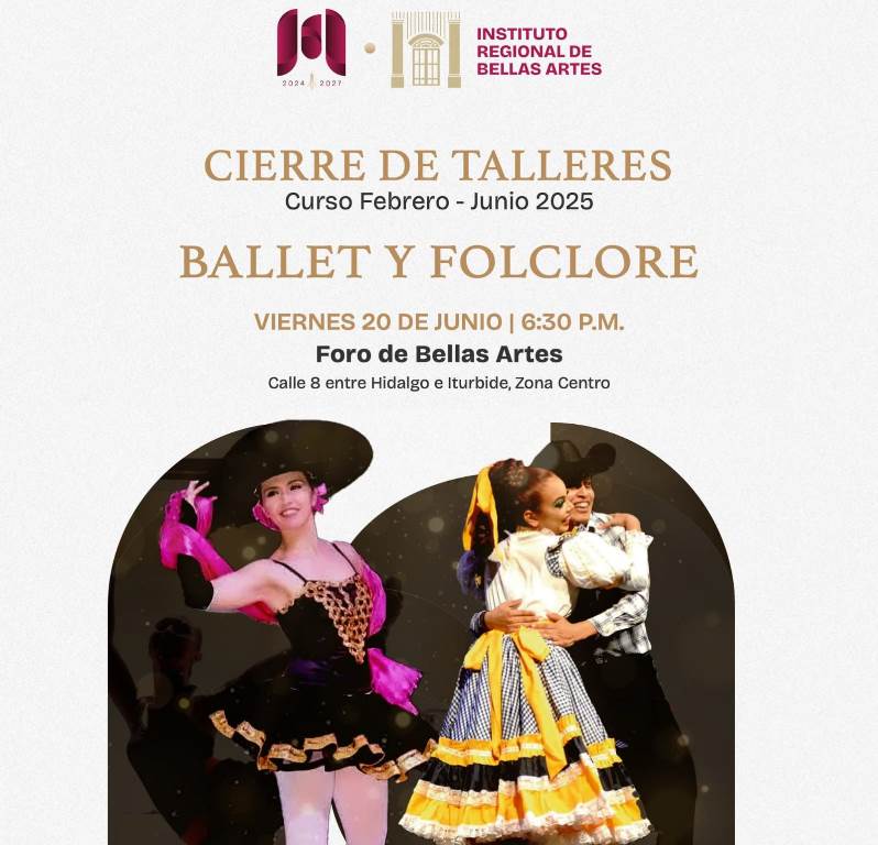 H. Matamoros, Tamaulipas.- El Gobierno de Matamoros, que preside Beto Granados, invita a la comunidad a disfrutar del Cierre de los Talleres de Ballet y Folclore, una presentación llena de ritmo, gracia y tradición que refleja el esfuerzo y la pasión de cada participante. Este viernes 20 de junio, a partir de las 6:30 p.m., el Foro del Instituto Regional de Bellas Artes Matamoros será el escenario perfecto para celebrar nuestras raíces y el talento local.