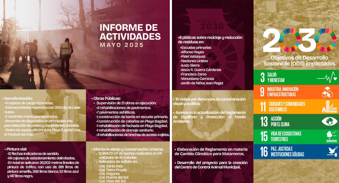 H. Matamoros, Tamaulipas.- Durante el mes de mayo, el gobierno municipal, a través de la Secretaría de Desarrollo Urbano y Ecología, reforzó su compromiso con la ciudadanía trabajando directamente en las calles y colonias del municipio. Estas acciones se enfocaron en mejorar la movilidad, incrementar la seguridad vial y promover el respeto por el entorno urbano, con el objetivo de elevar la calidad de vida de las y los habitantes.
