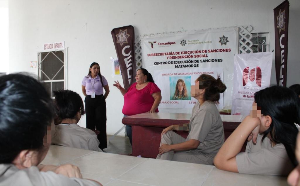 Matamoros, Tamaulipas.- Resultado de la colaboración entre la Secretaría de Seguridad Pública de Tamaulipas (SSPT) y el Instituto Municipal de la Mujer en Matamoros, mujeres privadas de la libertad en el Centro de Ejecución de Sanciones (CEDES) de este municipio recibieron consultas psicológicas.