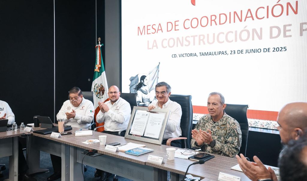 Ciudad Victoria, Tamaulipas.- El gobernador Américo Villarreal Anaya recibió en la Mesa de Coordinación para la Construcción de Paz a ejecutivos de Hyundai Glovis México y Mota-Engil, a fin de evaluar el avance de aspectos logísticos, de seguridad y planeación para el inicio de operaciones del Puerto del Norte, en el municipio de Matamoros.