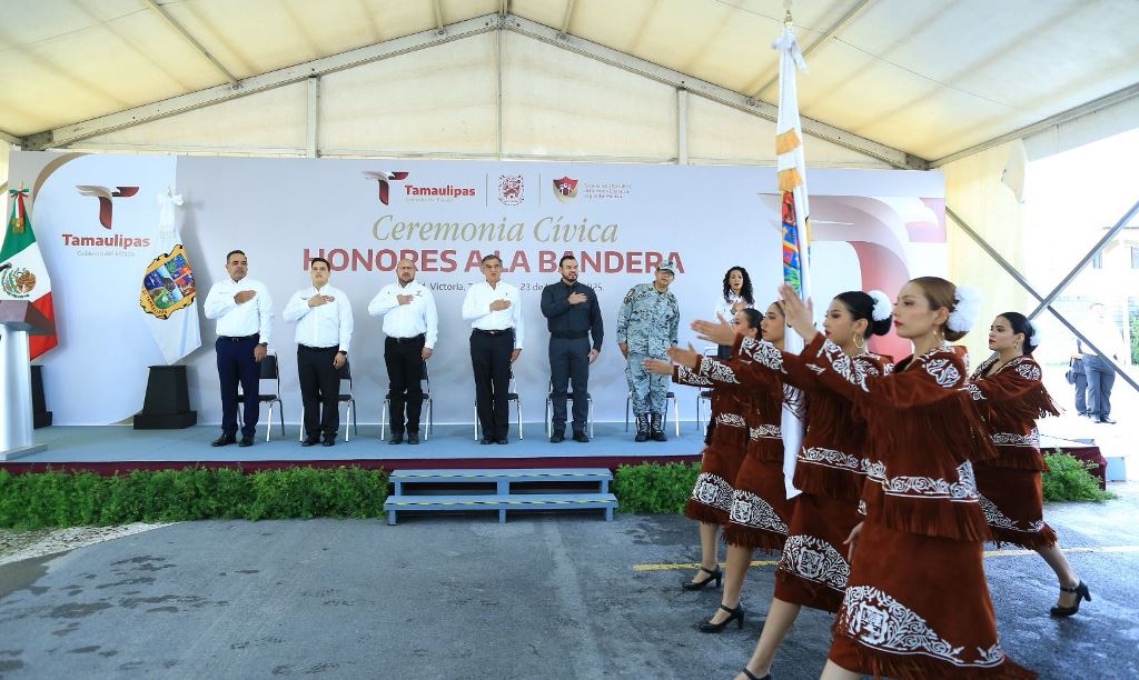 Participaron en los honores también: Héctor Joel Villegas González, secretario general de Gobierno; Humberto Prieto Herrera, presidente de la Junta de Gobierno del Congreso local; Cynthia Jaime Castillo, presidenta de la Mesa Directiva del Congreso local; Hernán de la Garza Tamez, presidente del Supremo Tribunal de Justicia y Francisco Alvarado Terán, coordinador estatal de la Guardia Nacional, además de funcionarios del gabinete estatal, personal del C3 e integrantes de la Mesa de Coordinación para la Construcción de la Paz.