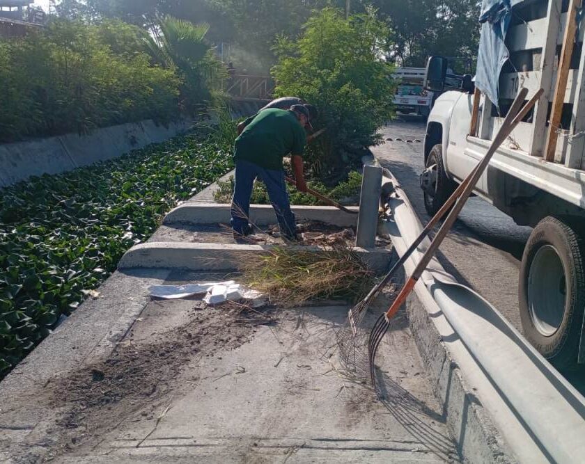 Reynosa, Tam.- La Secretaría de Servicios Públicos del Gobierno de Reynosa lleva a cabo el desazolve del dren y saneamiento de la calichera en la colonia Balcones de Alcalá, en base a instrucciones del Presidente Municipal Carlos Peña Ortiz. De forma alterna trabajadores retiran la hierba con herramientas manuales, mientras con maquinaria pesada realizan maniobras para retirar el lirio acuático…