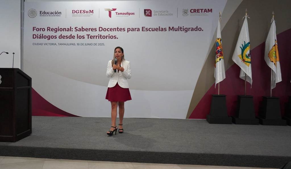 Dijo que el foro tuvo como objetivo principal visibilizar y valorar los saberes docentes construidos en las escuelas multigrado, a través de un ejercicio de diálogo entre comunidades escolares, acorde a las estrategias establecidas por el Gobierno del Estado, que dirige Américo Villarreal Anaya, para fortalecer la capacitación y actualización de las maestras y maestros en Tamaulipas.