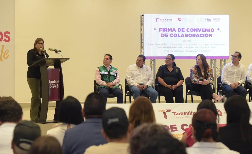 Nuevo Laredo, Tamaulipas.- En cumplimiento de la agenda ambiental del Gobierno de Tamaulipas y con el objetivo de fortalecer la colaboración interinstitucional en materia de crecimiento sostenible, la Secretaría de Desarrollo Urbano y Medio Ambiente (SEDUMA) y el Gobierno Municipal de Nuevo Laredo firmaron un convenio de colaboración que permitirá coordinar acciones conjuntas enfocadas en la reforestación urbana, la donación de árboles y la integración del sector empresarial comprometido con el cuidado del entorno.