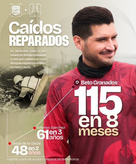 H. Matamoros, Tamaulipas.- Con acciones firmes y compromiso constante, el Gobierno Municipal avanza en la rehabilitación de la infraestructura urbana. A ocho meses de haber iniciado esta administración, se han reparado 115 caídos en distintos puntos de la ciudad, respondiendo así a una de las principales demandas de la ciudadanía.