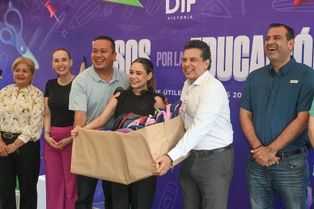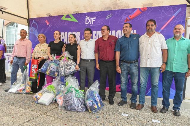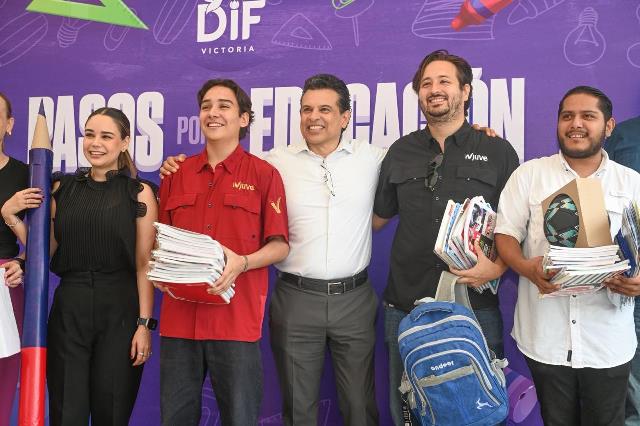 En el arranque de la campaña, a la que se sumaron integrantes del Cabildo, fueron donados cientos de mochilas, miles de cuadernos, plumas, lápices, colores y material didáctico que distribuirá el equipo del DIF Victoria a los estudiantes de escuelas rurales y colonias de la periferia de la ciudad previo al inicio del ciclo escolar.