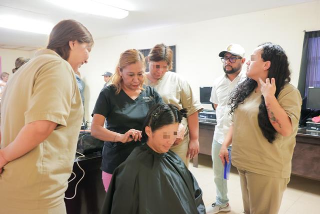 Reynosa, Tam.- Por instrucciones del Alcalde, Carlos Peña Ortiz, el Sistema DIF-Reynosa, que preside Carlos Luis Peña Garza, lleva a cabo los talleres de Resina Epóxica y Barbería, impartidos por maestras de CEDIF, en el Centro de Ejecución de Sanciones, con el objetivo de brindar herramientas de aprendizaje y oficios que permitan a las personas que cumplen una sentencia judicial a construir nuevas oportunidades para su reinserción social.