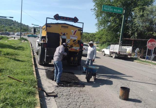Cd. Victoria, Tam.- Tras el cese de lluvias y por instrucción del presidente municipal de Victoria Eduardo Gattás Báez, la Secretaría de Obras Públicas del Municipio, reactivó el programa emergente de bacheo para reparar avenidas y calles de la ciudad afectadas por la humedad.