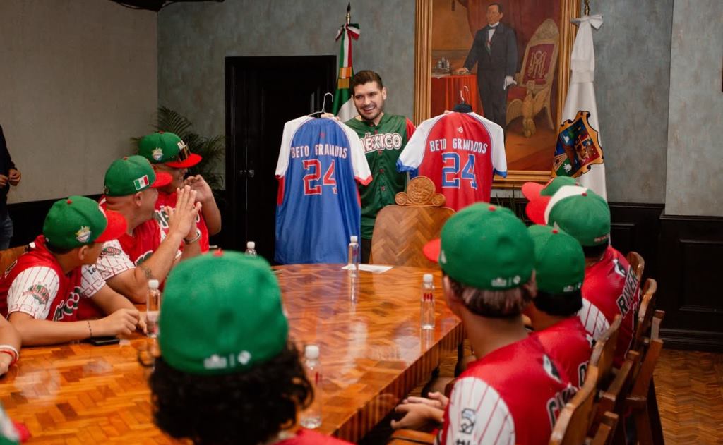 H. Matamoros, Tamaulipas.- El presidente municipal, Beto Granados, recibió al equipo de la Liga Pequeña de Béisbol Villa del Refugio A.C., quienes representarán a Matamoros y a México en una competencia internacional que se llevará a cabo en Guatemala. Durante el encuentro, el alcalde expresó su reconocimiento a los jóvenes deportistas por su dedicación, disciplina y pasión por el béisbol, valores que, dijo, son ejemplo para toda la niñez y juventud matamorense.