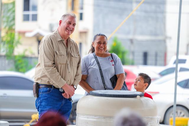 Reynosa, Tam.- El Alcalde de Reynosa, Carlos Peña Ortiz, encabezó una Brigada del DIF-Reynosa con familias de Hacienda las Bugambilias, donde se evidenció la simpatía y aprecio entre él y los colonos, este sábado 5 de julio que acudió a entregar ropa y zapatos nuevos donados por la empresa BHermanos, como parte de la alianza entre la iniciativa privada con la administración pública de Reynosa, y con el organismo asistencial que por su parte hizo entrega gratuita de tinacos.