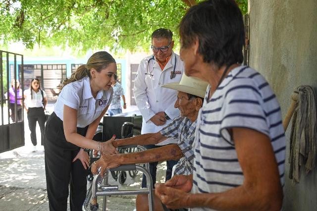 Cd. Victoria, Tam.- La presidenta del Sistema DIF Victoria, Lucy de Gattás acudió este día al domicilio de la señora Eva Ochoa para brindar asistencia social y médica a su esposo Juan Delgado de 80 años de edad, postrado en cama por enfermedad.