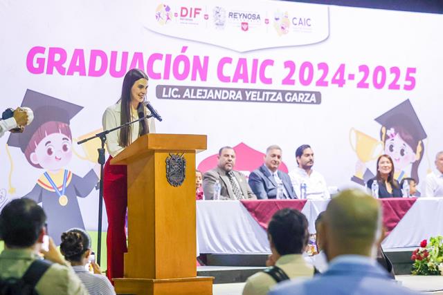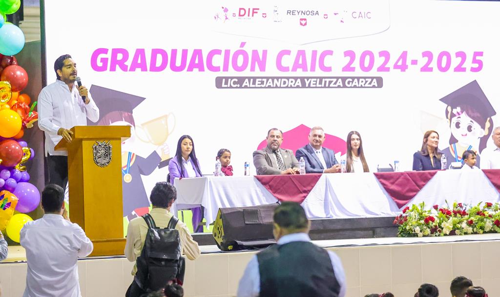 “Este es un día tan especial para todos los reynosenses porque estamos graduando a una nueva generación del CAIC que representa el futuro de nuestra ciudad y de nuestro país “, dijo el Presidente Municipal y felicitó a los 450 de más de de 800 alumnos que terminan su preescolar.