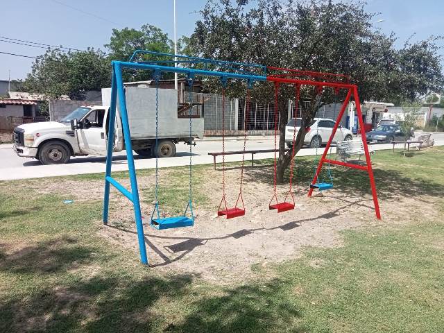 Reynosa, Tam.- Por indicaciones del Presidente Municipal Carlos Peña Ortiz, se llevaron a cabo trabajos de pintura para restaurar y mejorar la imagen de instalaciones urbanas de uso común, como los juegos infantiles y bancas metálicas en la plaza pública de la colonia Fidel Velázquez por la calle Azucena.