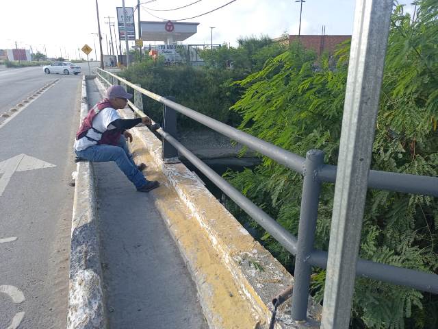 Las cuadrillas municipales iniciaron el pintado de la estructura metálica de un puente vehicular frente a la entrada de la colonia Arcoíris por la calzada Victoria, trabajo que forma parte del esfuerzo del Gobierno Municipal para mejorar la imagen urbana y brindar un entorno más agradable y seguro para los ciudadanos.