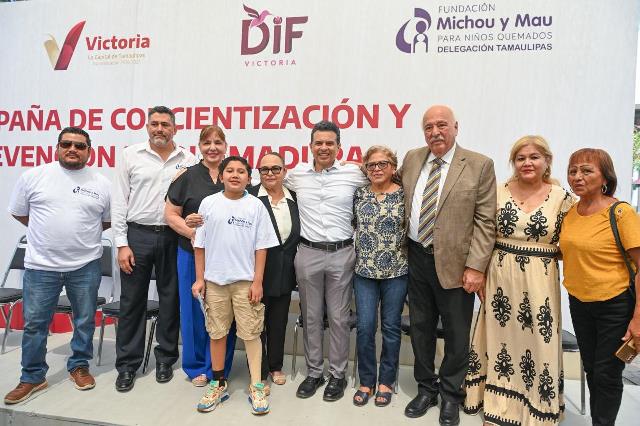 Cd. Victoria, Tam.- Con el llamado a fortalecer la cultura de la prevención en el hogar durante el próximo periodo vacacional, el presidente municipal de Victoria Eduardo Gattás Báez, inauguró con la Fundación Michou y Mau la Campaña de Concientización y Prevención de Quemaduras.