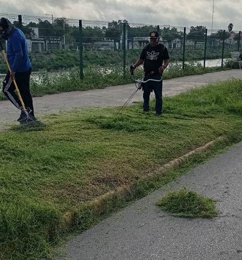 Reynosa, Tam.- Como parte de las acciones permanentes para el mejoramiento urbano y el cuidado del entorno, el Gobierno Municipal que encabeza el Presidente Carlos Peña Ortiz lleva a cabo una intensa jornada de limpieza y mantenimiento en el Parque Lineal Anzaldúas, un espacio público representativo de la ciudad.