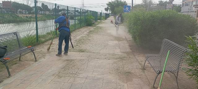 El personal de la Dirección de Servicios Públicos Primarios realiza estas tareas de forma coordinada, abarcando el retiro de maleza, recolección de residuos, mantenimiento de áreas verdes y rehabilitación general del entorno.