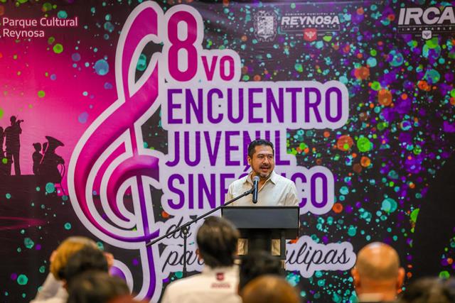 Con su discurso el Alcalde dio inicio al 8vo Encuentro Juvenil Sinfónico de Reynosa para Tamaulipas, que se lleva a cabo del 14 al 19 de julio con la dirección del Maestro Luis Manuel Sánchez Rivas, Director de la Orquesta de Cámara de Bellas Artes y con talleres de los más destacados Maestros especialistas de Conservatorio en diversas instrumentos.