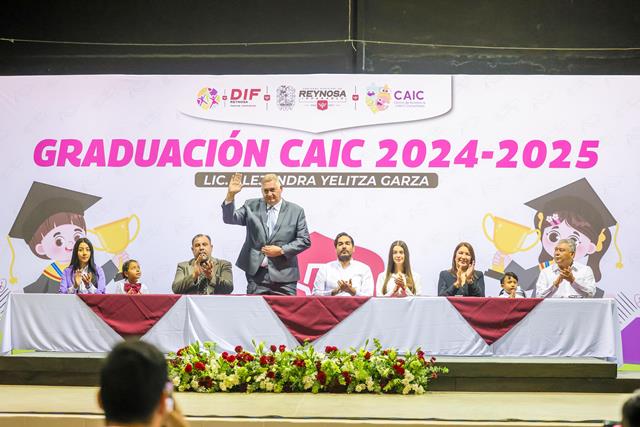 Reynosa, Tam.- “Quiero agradecer mucho de parte del DIF Reynosa y el Presidente Municipal Carlos Victor Peña Ortiz, que tengan la valentía, el coraje y la disciplina para sus hijos todos los días en la escuela”, dijo el titular del Patronato del sistema DIF-Reynosa, Carlos Luis Peña Garza, ante padres de familia que acompañaron la graduación de sus hijos del Centro de Atención Infantil Comunitario.