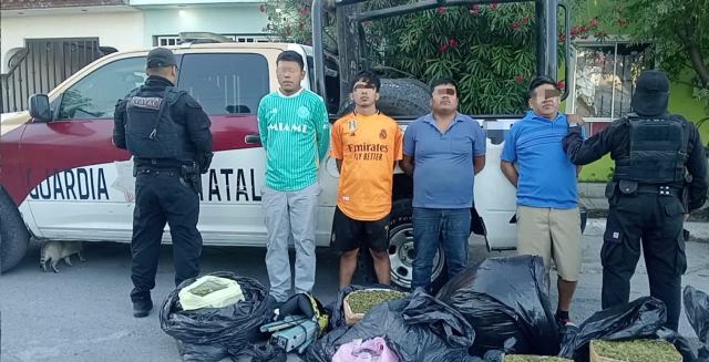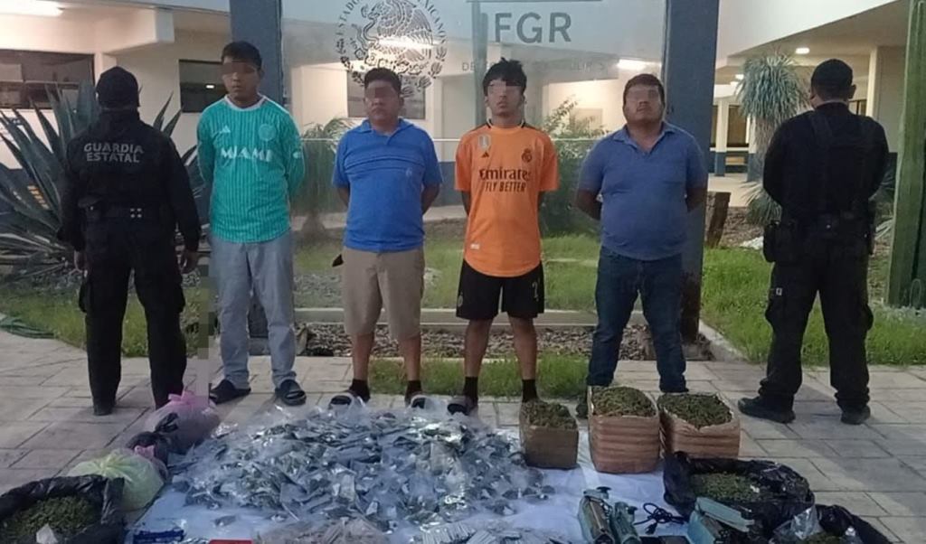 La Guardia Estatal arrestó en #Reynosa a cuatro hombres en una casa de seguridad que funcionaba como punto de distribución de drogas en la colonia Colinas del Real, donde se incautaron báscula, marihuana y otros objetos. Puestos a disposición de la @FGRMexico