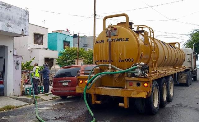 Con el uso de pipas de hasta 22 Mil litros de agua, el Gobierno y la COMAPA de Reynosa abastecen a las colonias de mayor altitud y las más lejanas de las plantas potabilizadoras, que son las que tienen mayor déficit en la distribución por medio de la red pública.