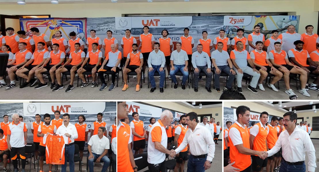 Cd. Victoria, Tam.- Con el propósito de seguir consolidando el deporte universitario, el rector de la Universidad Autónoma de Tamaulipas (UAT), Dámaso Anaya Alvarado, encabezó la presentación oficial del equipo Correcaminos rumbo al Torneo Apertura 2025 de la Liga de Expansión.