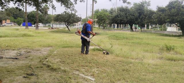 Reynosa, Tam.- De acuerdo a las instrucciones dictadas por el Alcalde Carlos Peña Ortiz al área operativa del Gobierno Municipal, se está llevando a cabo trabajo de saneamiento en las plazas públicas de Reynosa para fomentar la convivencia vecinal y promover el sano esparcimiento de las familias reynosenses.