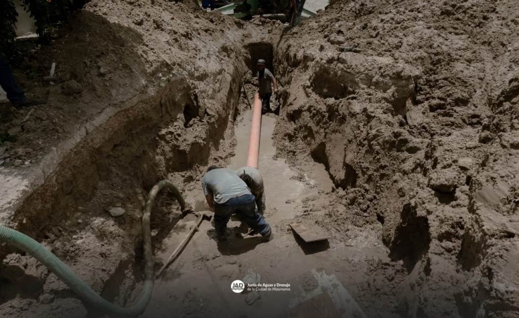 H. Matamoros, Tamaulipas.- El Gobierno Municipal de Matamoros, en coordinación con la Junta de Aguas y Drenaje, avanza en los trabajos de rehabilitación de una línea de descarga sanitaria en la colonia Campestre del Río 1, con el objetivo de mejorar el sistema de drenaje y brindar un servicio más eficiente a las familias del sector.