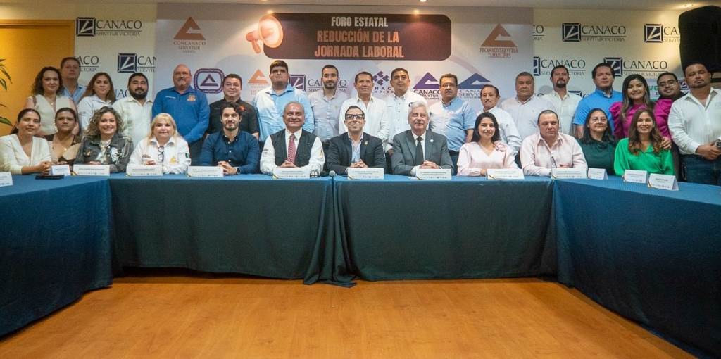 Ciudad Victoria, Tamaulipas.- El secretario del Trabajo y Previsión Social de Tamaulipas, Luis Gerardo Illoldi Reyes, participó en el Foro Estatal sobre la Reducción de la Jornada Laboral, realizado en las instalaciones de la Cámara Nacional de Comercio (Canaco) de Victoria, donde se abordaron los retos y oportunidades de esta iniciativa para el sector productivo y la fuerza laboral del estado.