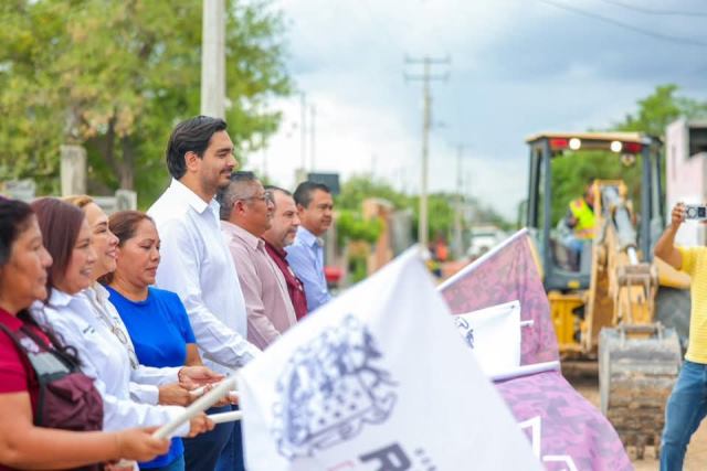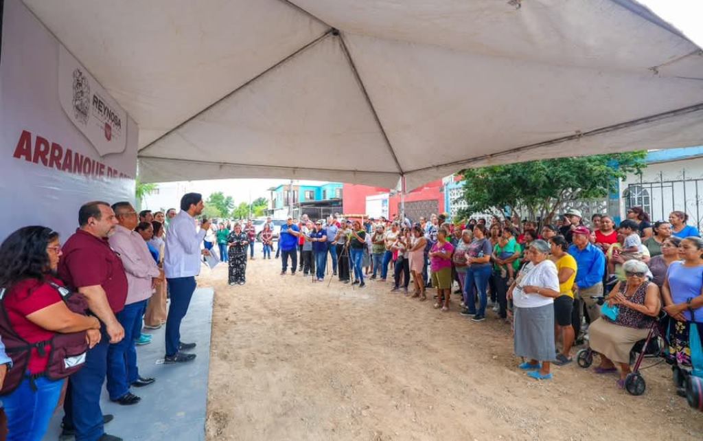 Reynosa, Tam.- Hoy la calle Vega Domínguez, de la colonia Américo Villarreal Guerra, fue un gran escenario de mucha emoción y agradecimiento para los vecinos, este viernes 15 de agosto el Presidente Municipal Carlos Peña Ortiz dio el banderazo de inicio a la pavimentación, acompañado por las familias beneficiarias.
