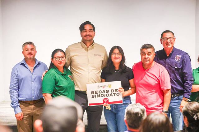 Reynosa, Tam.- El Alcalde Carlos Peña Ortiz entregó apoyos educativos a los hijos de los trabajadores del Sindicato del Municipio. Este apoyo se otorga a través del Programa de Becas “Contamos Contigo 2025” y beneficia a estudiantes de Kinder, Primaria, Universidad, Arte y Deporte.