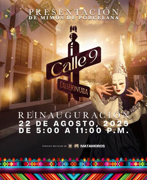 H. Matamoros, Tamaulipas.- El Gobierno Municipal de Matamoros, encabezado por Beto Granados, hace una cordial invitación a toda la ciudadanía para ser parte de un evento lleno de arte y tradición: la presentación especial de Mimos de Porcelana, que se llevará a cabo este viernes 22 de agosto como parte de la esperada reinauguración de la Callejoneada.
