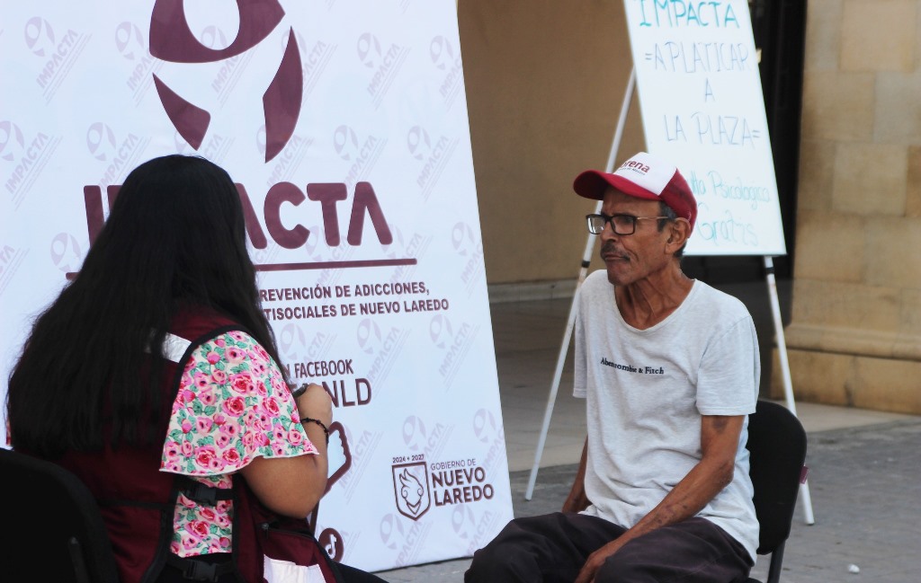 Nuevo Laredo, Tam.- Con el objetivo de llegar a más personas y fomentar la conciencia sobre la importancia de la salud mental, el Instituto Municipal de Prevención de Adicciones, Conductas y Tendencias Antisociales (IMPACTA) llevó a cabo la jornada “A platicar a la plaza” en uno de los espacios públicos más concurridos de Nuevo Laredo; la Plaza Hidalgo.