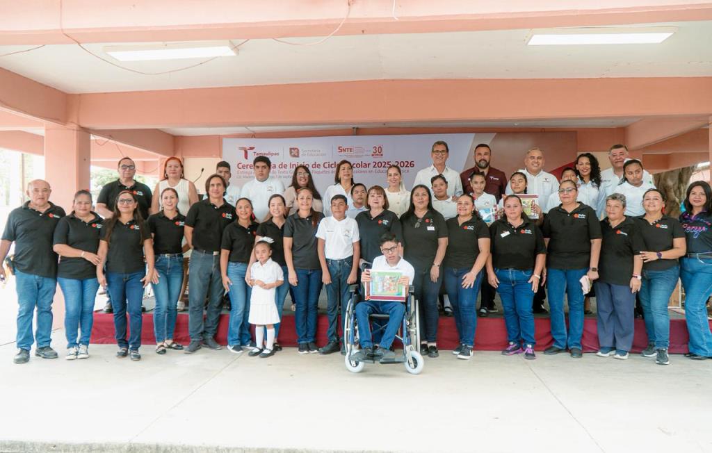 Ciudad Madero, Tamaulipas.- En representación del gobernador de Tamaulipas, Américo Villarreal Anaya, el secretario de Turismo en el estado, Benjamín Hernández Rodríguez, acudió al Centro de Atención Múltiple “Profra. Luz Esthela Céspedes García”, de Ciudad Madero, para dar inicio al ciclo escolar 2025-2026.