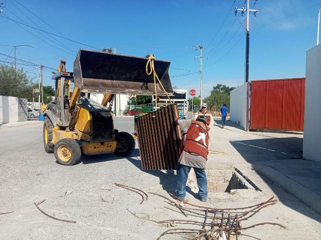 Reynosa, Tam.- Cuadrillas del Gobierno que preside Carlos Peña Ortiz instalaron una rejilla para el drenaje pluvial en la calle Álamo con libramiento Echeverría, obra tiene como objetivo mejorar la infraestructura pluvial de la ciudad y reducir los riesgos de inundación en la zona.