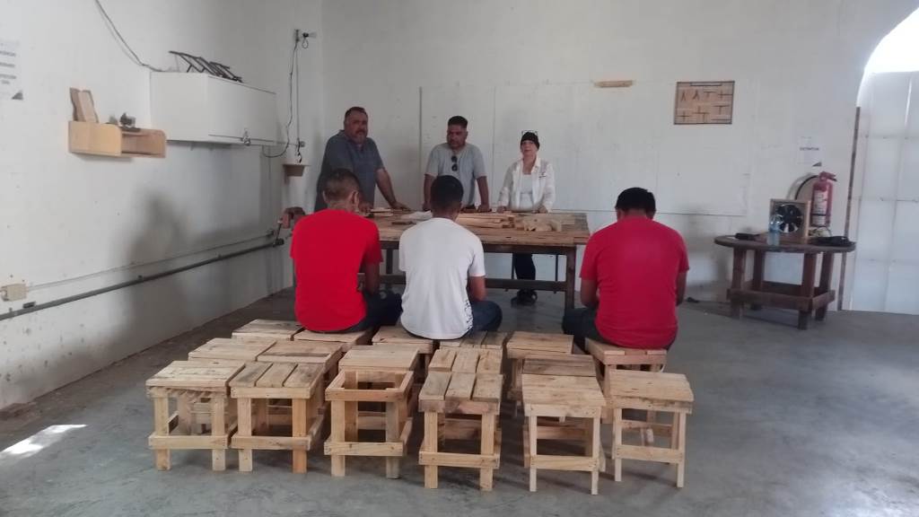 Reynosa, Tamaulipas.- Como una forma de emplear los conocimientos adquiridos en el Taller de Carpintería impartido en el Centro Regional de Ejecución de Medidas para Adolescentes en el municipio de Reynosa, y a la vez, fomentar el humanismo como factor para prevenir la reincidencia delictiva, menores de edad en externamiento elaboraron y donaron 80 sillas de madera a la Casa del Migrante ‘’Senda de Vida’’.