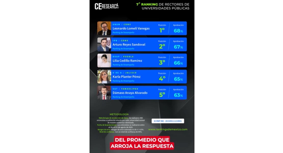 Anaya Alvarado, se ubicó en el 5to lugar en lo que es el Séptimo Ranking de Rectores de Universidades Públicas de CE RESEARCH, que evaluó el desempeño en rubros como infraestructura y calidad académica.