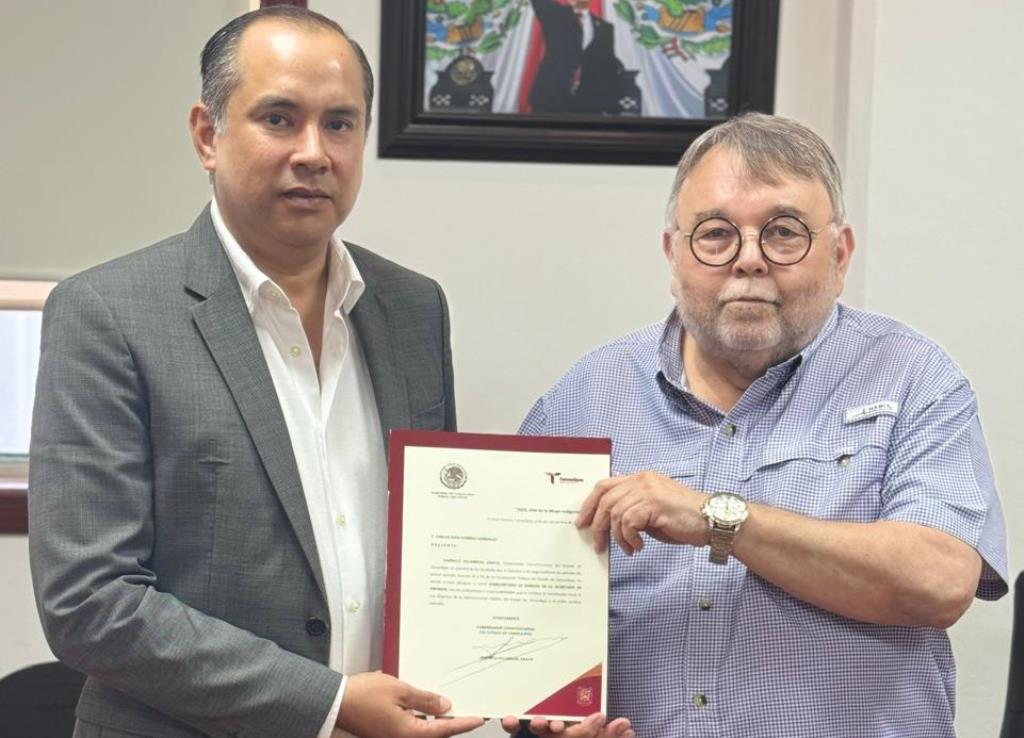 Norma Angélica Pedraza Melo, secretaria Anticorrupción y de Buen Gobierno, y Ricardo Guerrero, jefe de la Oficina del Gobernador, fueron testigos de la entrega de este nombramiento, el cual forma parte del proceso de reestructuración que impulsa el gobernador Américo Villarreal Anaya para eficientar el trabajo en la administración pública estatal.