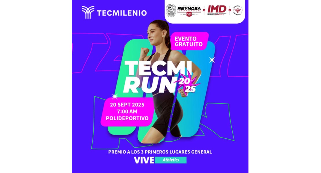 Reynosa, Tam.- El Alcalde Carlos Peña Ortiz invita a todas y todos los ciudadanos a sumarse a la carrera Tecmi Run 2025, organizada por la Universidad Tecmilenio, la cual se llevará a cabo el próximo 20 de septiembre a las 7:00 de la mañana en las instalaciones del Polideportivo de Reynosa.