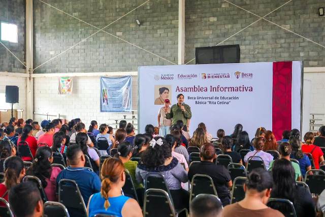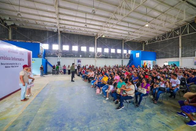 “Agradezco la presencia de padres de familia y abuelos que nos acompañan, gracias por estar comprometidos con la educación de sus hijos”, dijo el Presidente Municipal a quienes acudieron a recibir la tarjeta del programa Beca Universal de Educación Básica Rita Cetina.