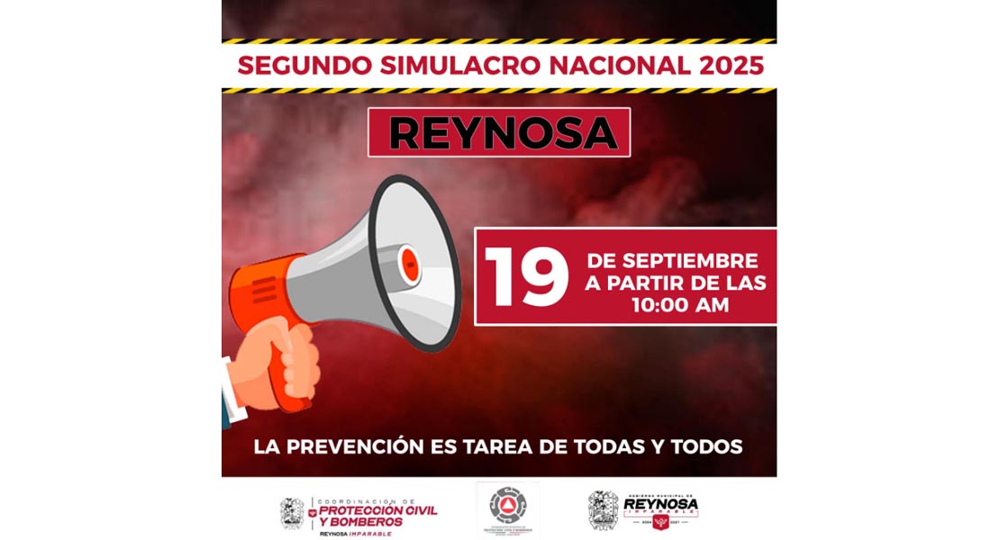 Reynosa, Tam.- El Gobierno Municipal que preside el Alcalde Carlos Peña Ortiz lleva a cabo, hoy viernes 19 de septiembre el Segundo Simulacro Nacional de Protección Civil, en una fecha que nos recuerda la importancia de la prevención, la cultura de la autoprotección y la solidaridad ante los desastres naturales.