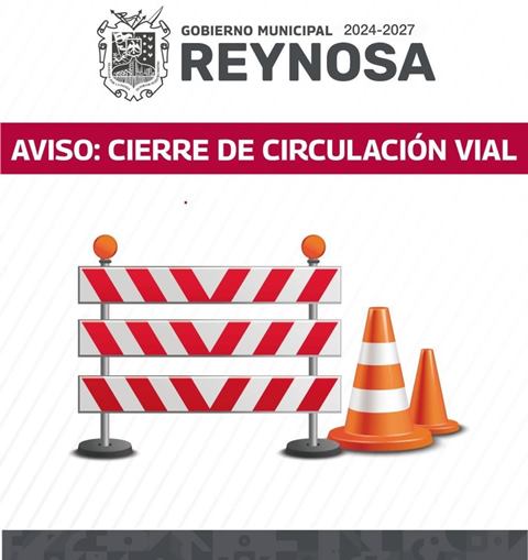 Reynosa, Tam.- La Secretaría de Obras Públicas del Municipio de Reynosa informa a la población que la lateral norte del canal Anzaldúas, en el tramo comprendido entre el libramiento Luis Echeverría y Fundadores, permanecerá cerrada de manera temporal debido a trabajo de rehabilitación de una tubería de agua potable.