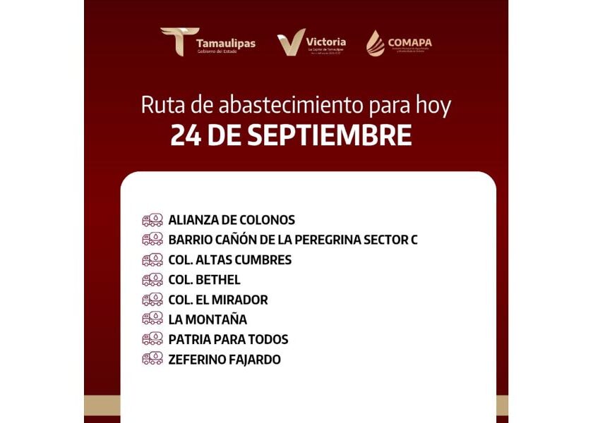 📍Alianza de Colonos📍Barrio Cañón de la Peregrina Sector C📍Col. Altas Cumbres📍Col. Bethel📍Col. El Mirador📍La Montaña📍Patria Para Todos📍Zeferino Fajardo 💧 ¡Juntos hacemos que el agua llegue a todos! Comparte esta información con tus vecinos.